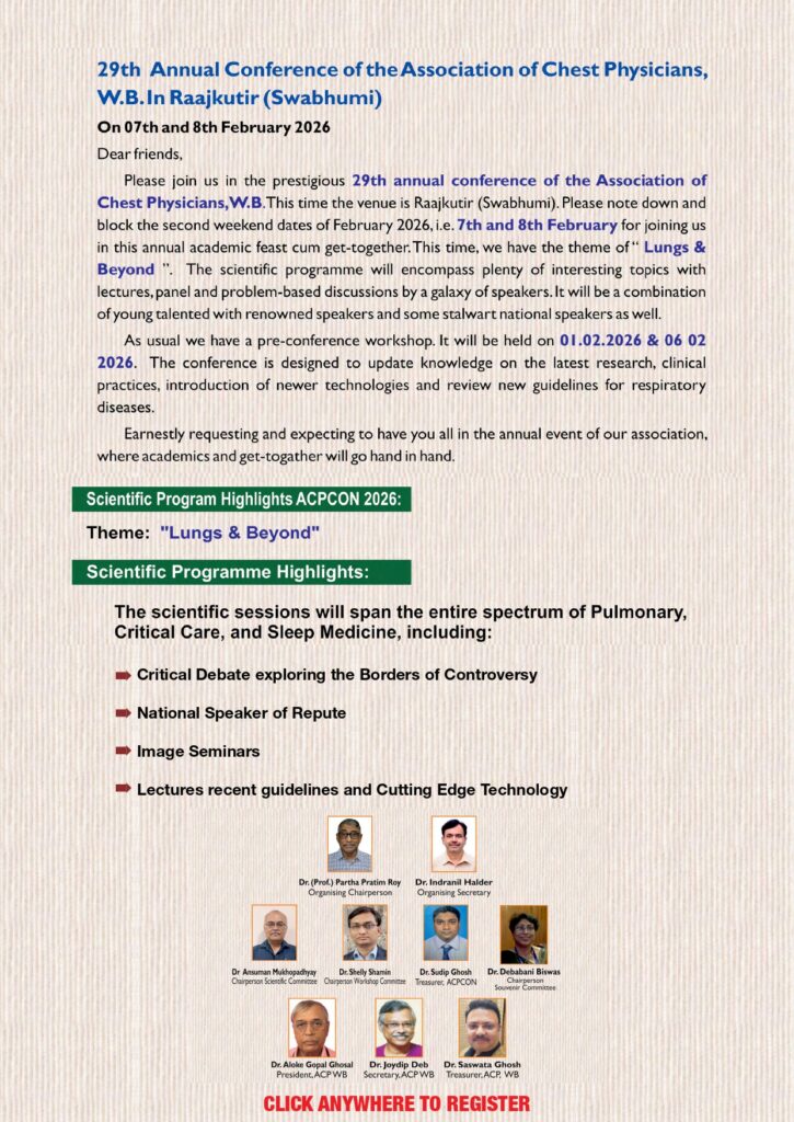 Pre-conference workshop on 6th May ( Advanced PFT at Medical College, Kolkata and Bronchoscopy Intervention and beyond at CMRI, Kolkata)